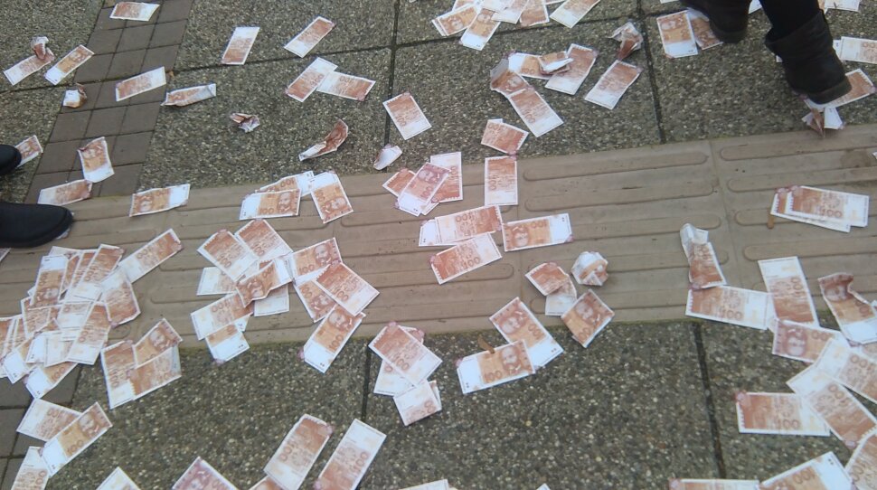Aktivistička provokacija kod Bandićevog ureda: Frcale novčanice!