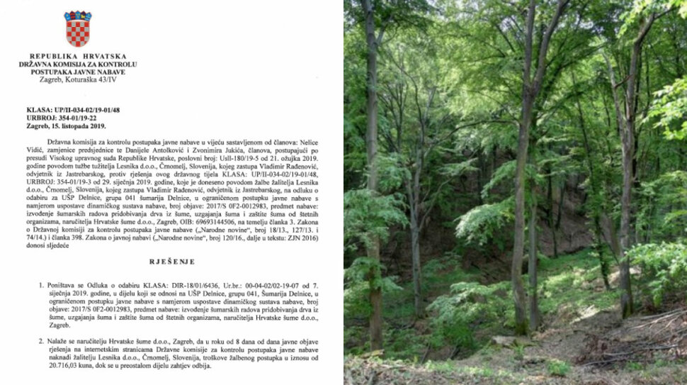 Naime, Hrvatske šume su tako zapravo priznale da nisu napravile odgovarajuću kontrolu troškovnika tvrtke te je tvrtka Tehnošume stavljena u povoljniji položaj u odnosu na ostale ponuditelje. Slovenskoj tvrtki će Hrvatske šume nadoknaditi 20.716,03 kuna troškova žalbenog postupka, a dio ovog višemilijunskog natječaja će se vratiti na početak.