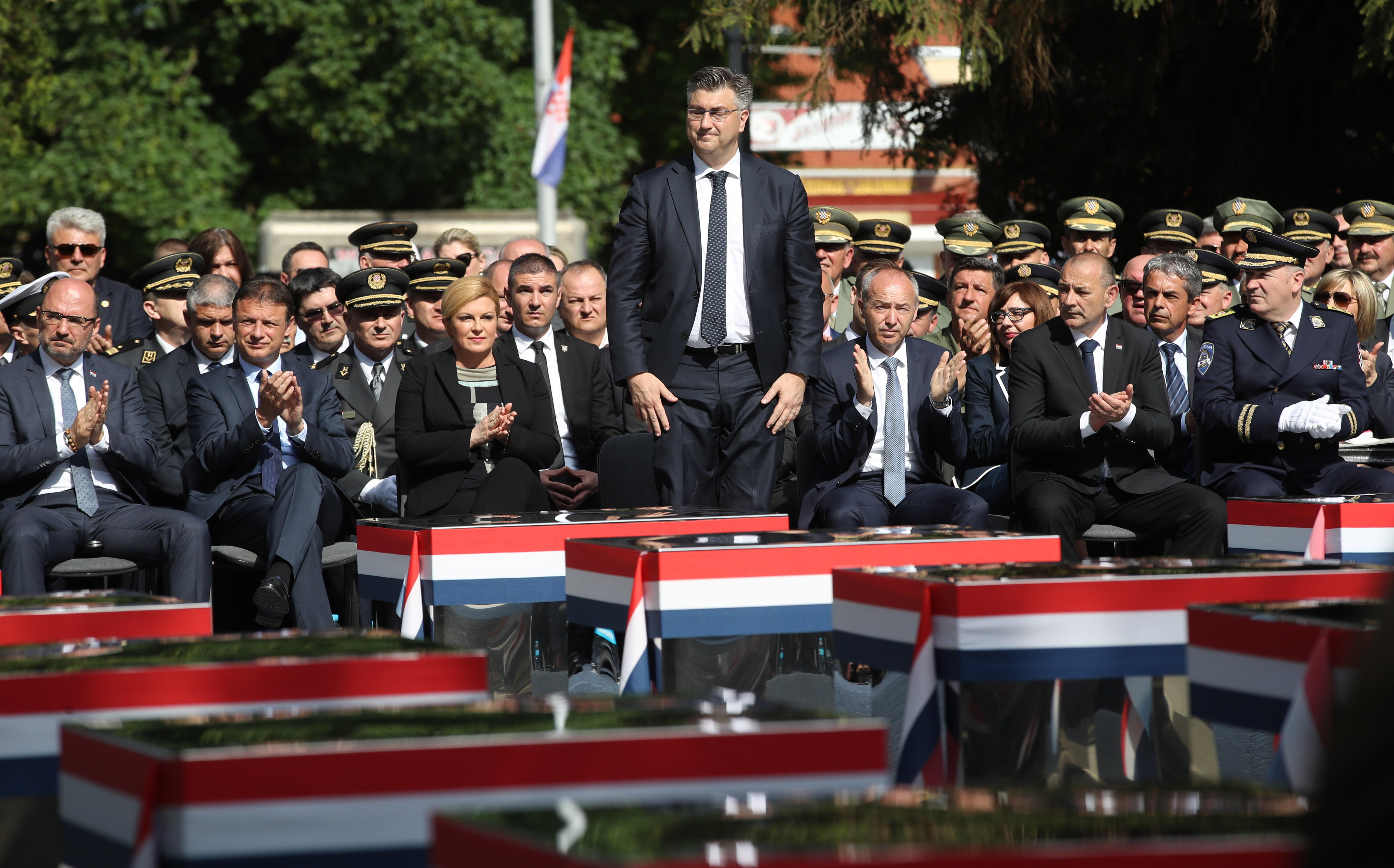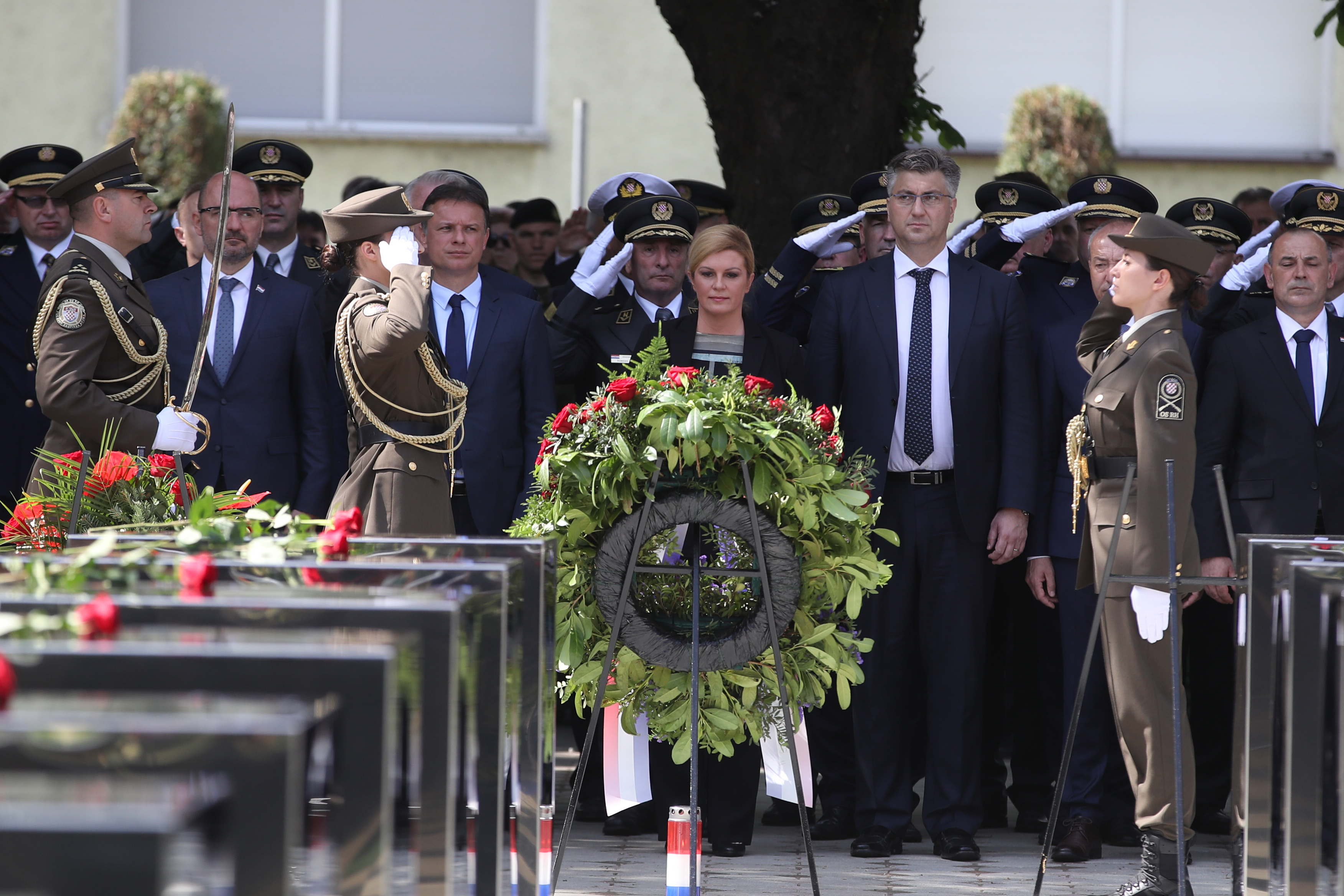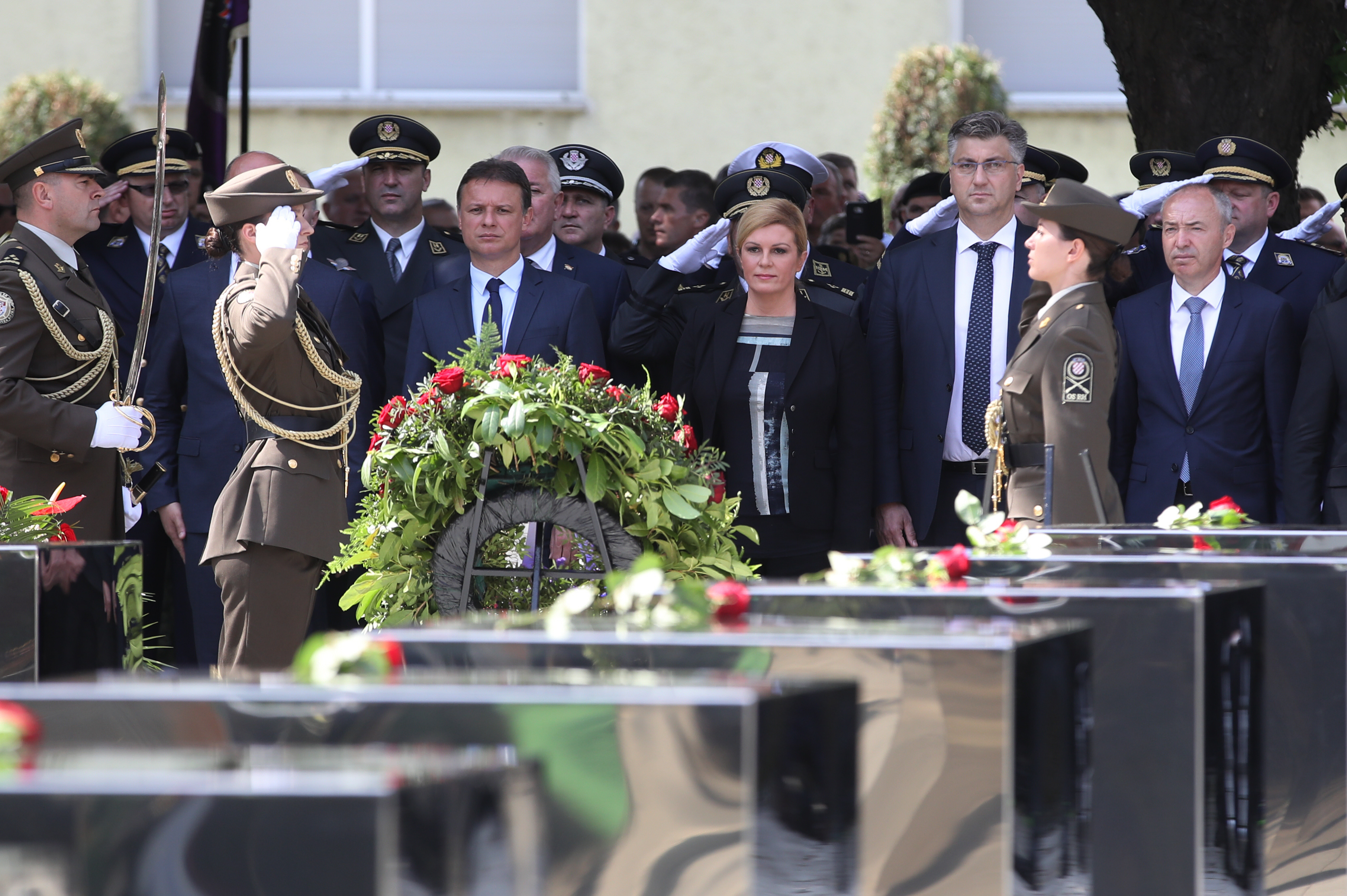 Zajednički vijenac, u ime Republike Hrvatske, kod spomen-obilježja poginulima položila je predsjednica Republike, vrhovna zapovjednica Oružanih snaga Kolinda Grabar-Kitarović, predsjednik Hrvatskog sabora Gordan Jandroković te premijer Andrej Plenković, zajedno s izaslanstvima Sabora i Vlade.