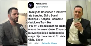 Konzul BiH u Frankfurtu Admir Atović u petak je objavio sporni status na Twitteru, a nakon svega privremeno je obrisao svoj profil. Nakon ponovne aktivacije profila na Twitteru, Atović je obrisao skandaloznu objavu, ali i svoje fotografije.