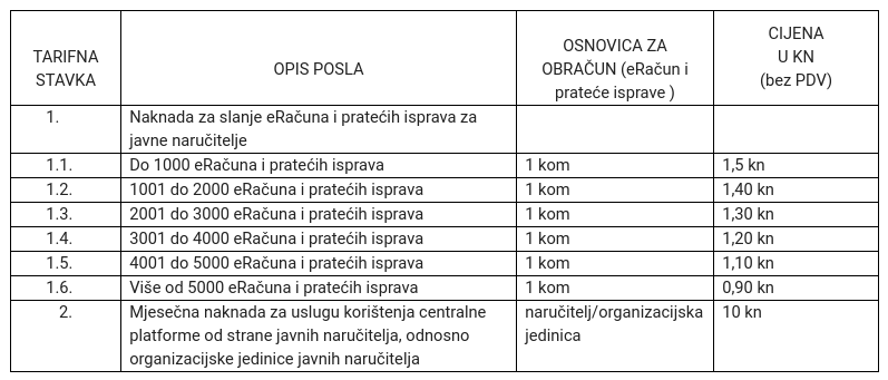 Ministarstvo gospodarstva je bilo nešto jasnije te je u svom odgovoru priložilo cjenik naknada koje plaćaju oni koji preko obavezne platforme izdaju račune.
