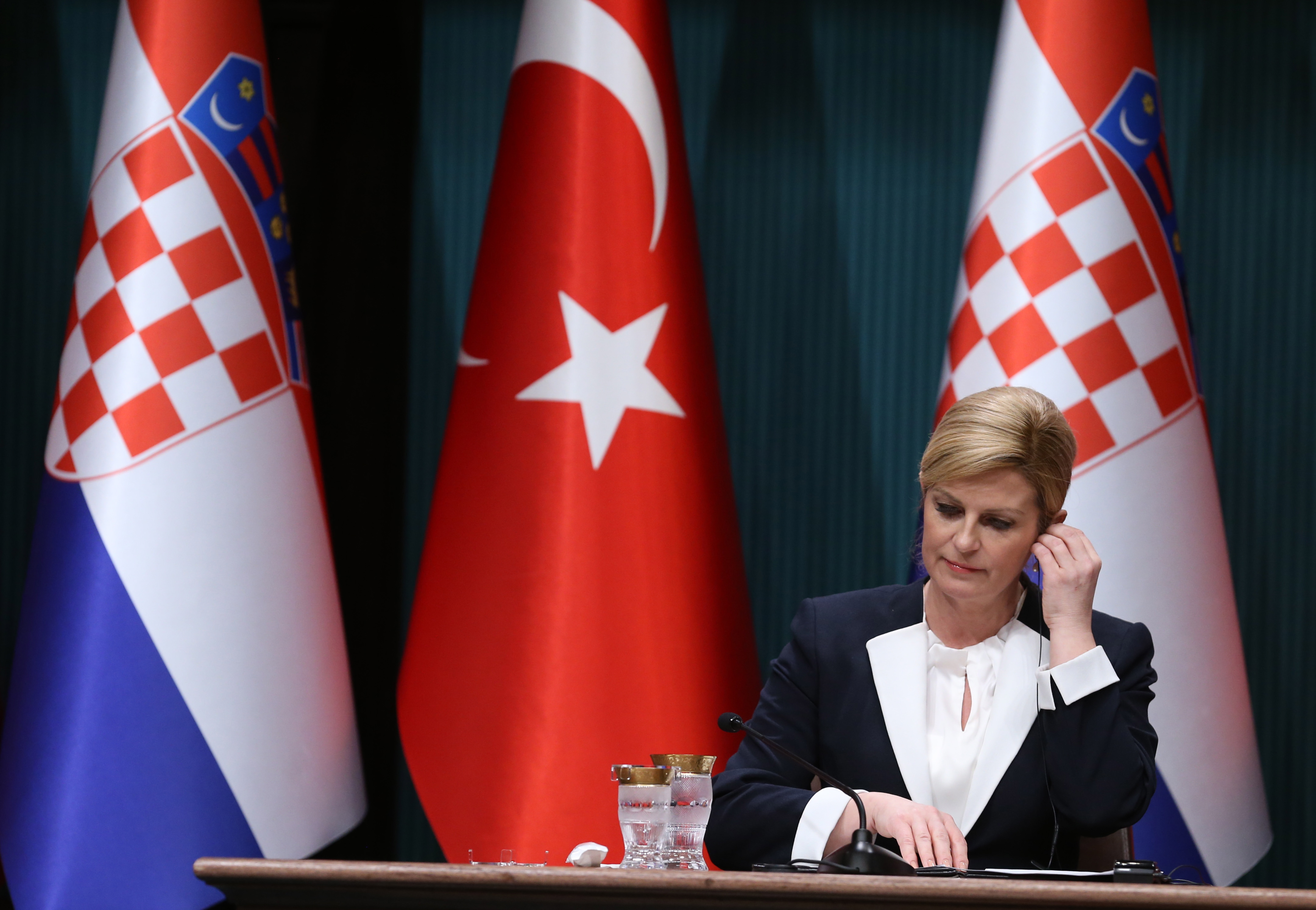 Dakako, predsjednici dviju zemalja dali su i zajedničke izjave, a hrvatska je predsjednica i ovoga puta plijenila poglede svojom modnom kombinacijom i elegancijom. Odjevena u decentni crni poslovni kostim s diskretnim, a nenapadnim bijelim detaljima (za prošloga je susreta Turskoj odjenula zelenu haljinu), dobro raspoložena i susretljiva, djelovala je potpuno drugačije od smrtno ozbiljnog predsjednika Erdogana.