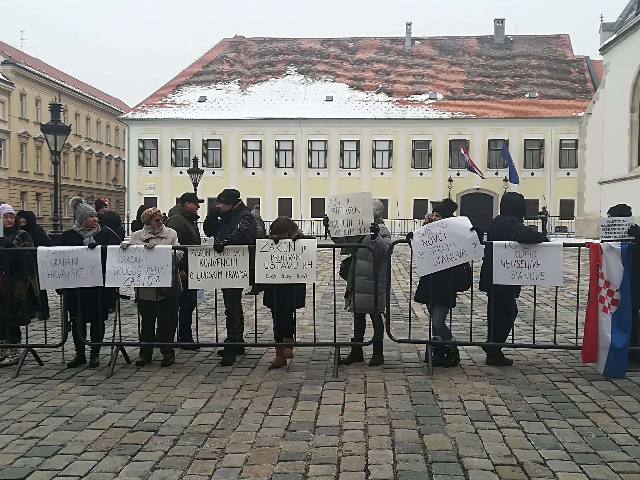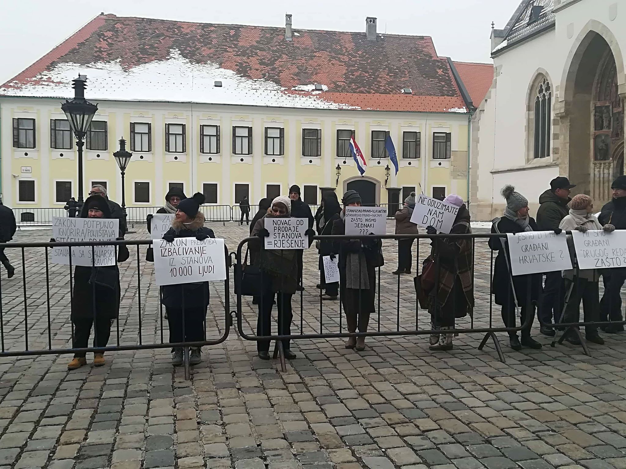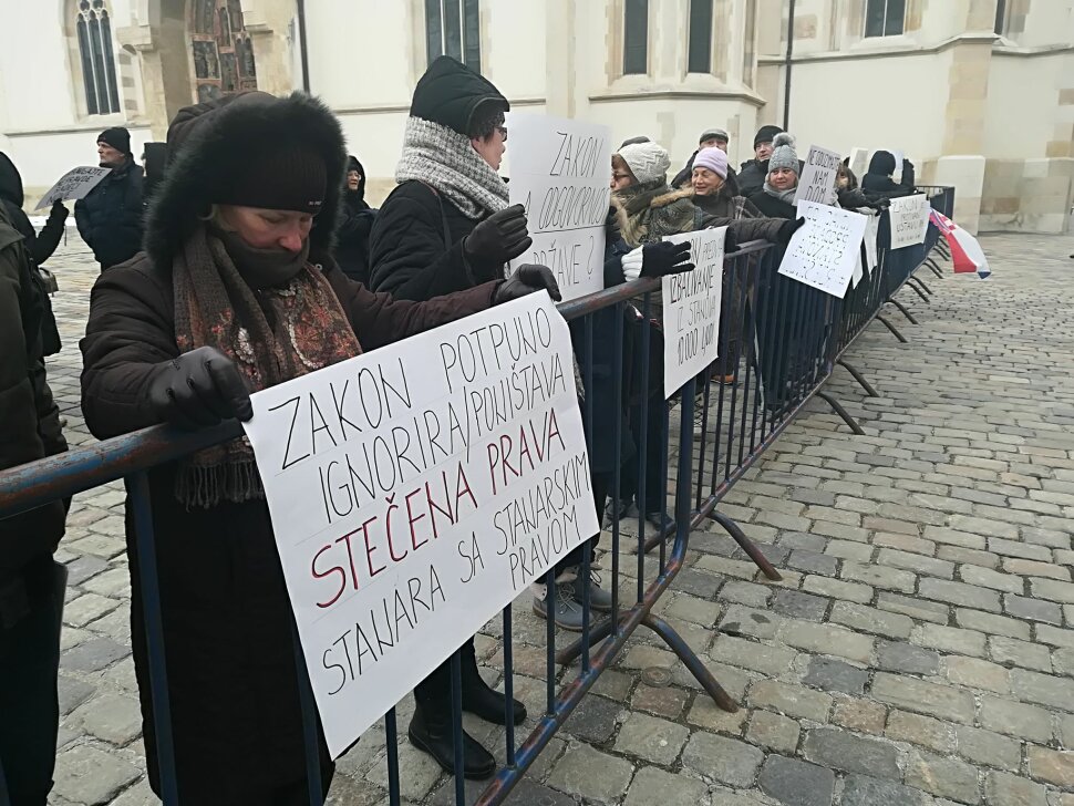 Nakon što su prije nekoliko dana uputili otvoreno pismo premijeru Plenkoviću u kojem su zatražili povlačenje Zakona o najmu stanova, udruge saveza stanara s početkom u 9 sati organizirale su prosvjed na Trgu sv. Marka.
