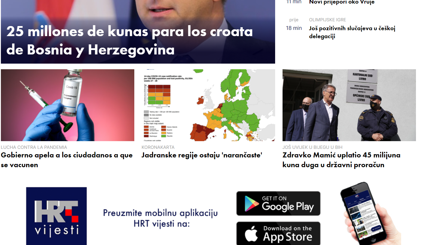 I to nije jedina vijest koju ste na HRT-u mogli pročitati na španjolskom jeziku. Naslov o apelu Vlade građanima za cijepljenje, također je bio na španjolskom, da bi nekoliko trenutaka kasnije sve bilo vraćeno u normalu, odnosno sporne vijesti maknute su.