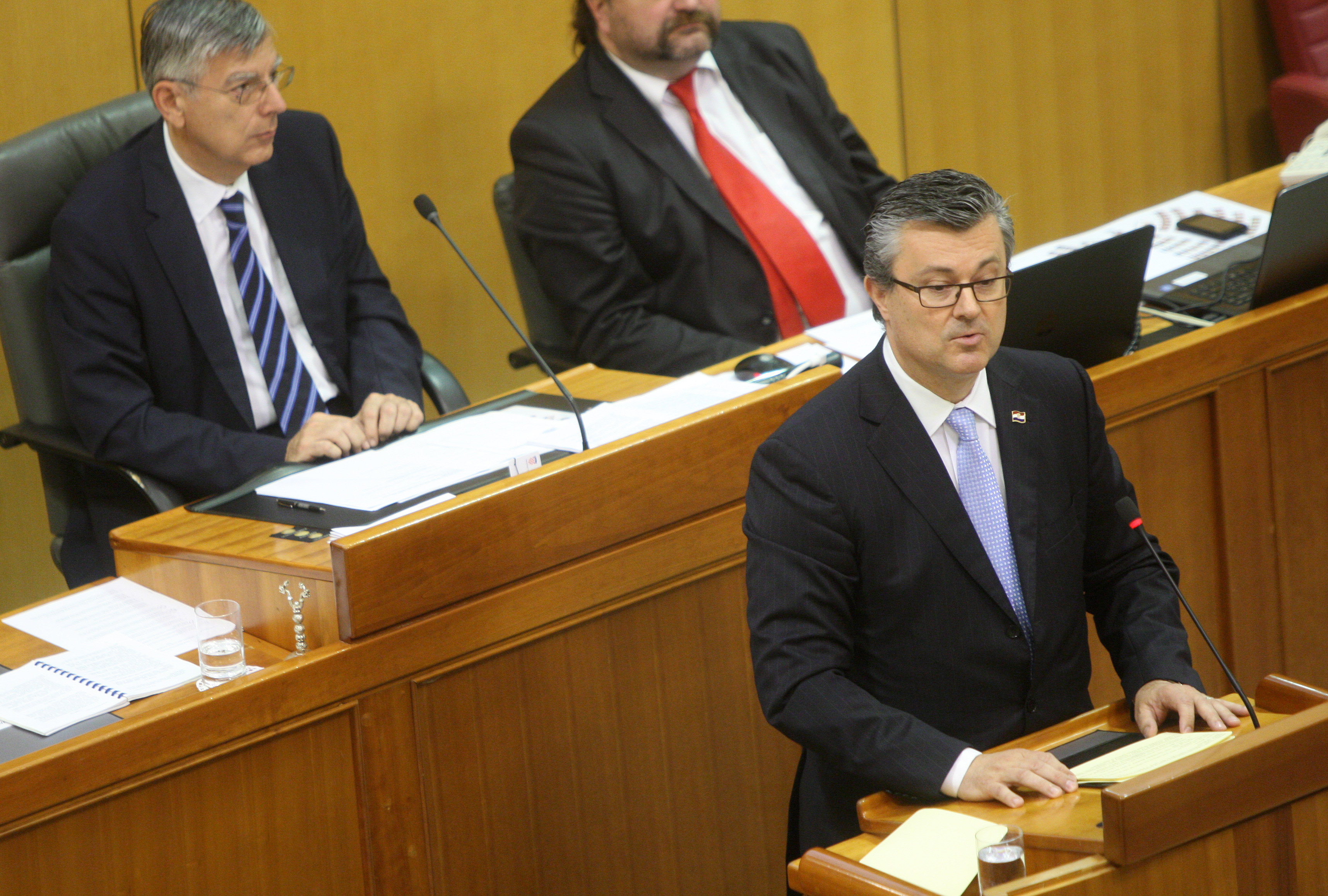 Glavaš: Šukeru, vi ste u svom izlaganju spominjali uporno da je do krize dolazi zbog lošeg kreditnog rejtinga, kamatnih stopa, niste spomenuli problem prodaje obveznica koji je propao zbog nestabilnosti vlade gdje ste vi glavni stup bili proteklih mjeseci. Problem je nastavo zbog nestabilnosti, a za to je odgovorna najjača stranka domoljubne koalicije. Niste spomenuli borbu koju ste vodili za prevladavanje obavještajnog sustava. To je ključ nestabilnosti vlade, to je uzrok zbog čega se vlada ruši nakon četiri mjeseca. Vjerujem da je došlo do vas, da je u posljednja tri mjeseca, iz HV koja je još aktualna, vršen pokušaj zlouporabe SOA, i doveden je nacionalni sigurnosni sustav, i zbog čega se premijer ruši. Ja ne branim premijera. Premijer mora progovoriti onih petnaest minuta.