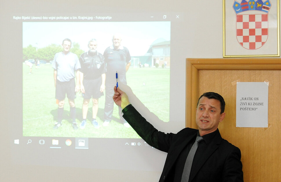 Na konferenciji za novinare prikazan je dio video i foto snimki koje, po njegovim riječima, "vjerodostojno prikazuju ratne zločince" koji su se 2013. okupili u Ugrinovcu nedaleko Beograda na obilježavanju 100 godina nogometa u Glini. "Najveća zvjerka tog javnog okupljanja bio je predsjednik Skupštine tzv. SAO Krajine Mile Paspalj koji je, dok je obnašao tu dužnost, bio gospodar života i smrti," kazao je Turudić.