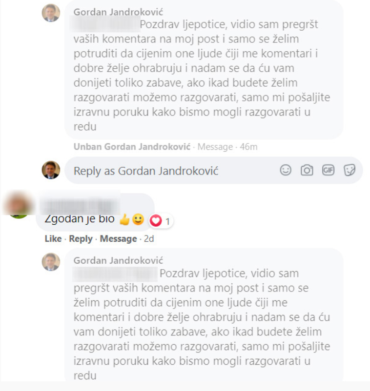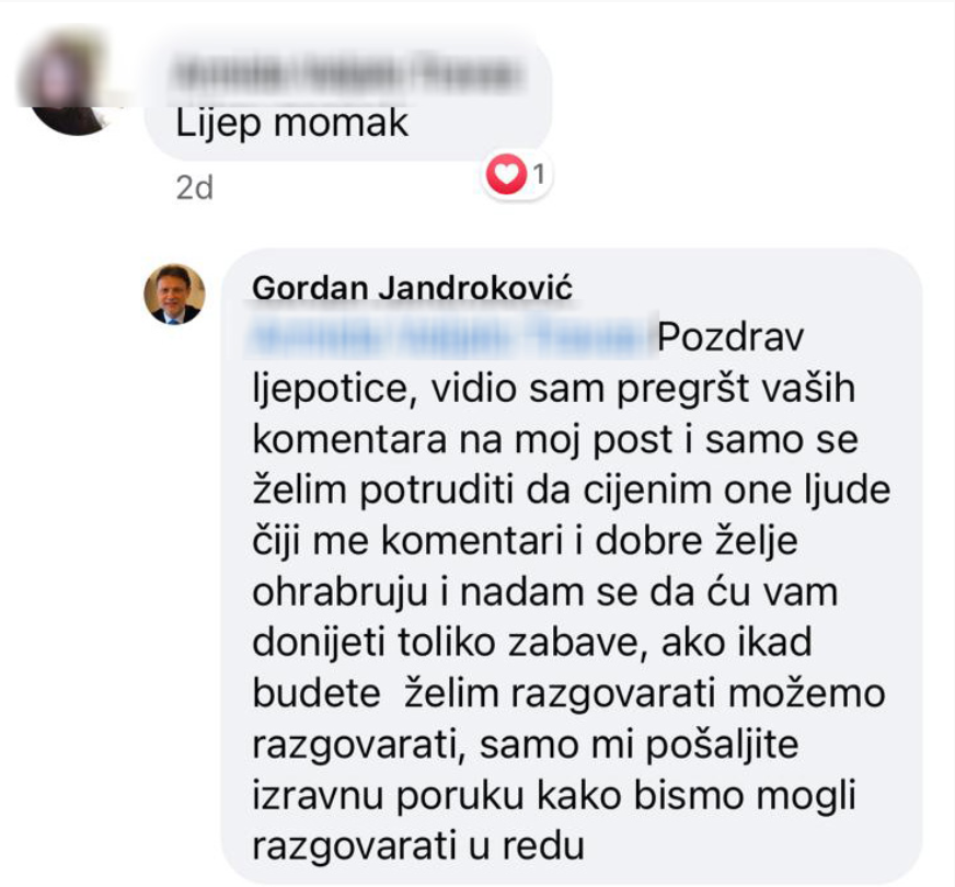 Osoba s lažnog profila ženama je slala poruke u kojima ih je u Jandrokovićevo ime pozivao na druženje.