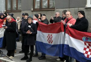 "Gdje si gradonačelniče", "Javi se", vikali su okupljeni prevođeni čelnikom A-HSP-a Draženom Kelemincem i onda pustili Bojnu Čavoglave.