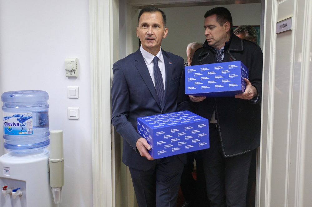 Tu se ipak nije zaustavio pa je kasnije objavio da je u dva dana uspio doći do 60 tisuća potpisa podrške da bi na kraju u srijedu u Državno izborno povjerenstvo, u društvu stranačkih i koalicijskih kolega predvođenih predsjednikom HDZ-a Andrejom Plenkovićem i predsjednikom Domovinskog pokreta Ivanom Penavom, došao s više od 100.000 potpisa.