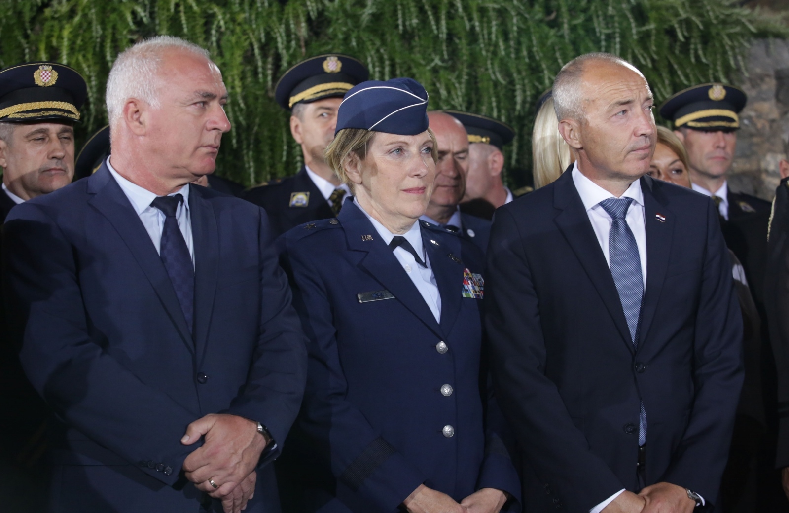 Potpredsjednici Vlade Republike Hrvatske - ministar obrane Damir Krstičević i ministar unutarnjih poslova Davor Božinović te ministar hrvatskih branitelja Tomo Medved svečano su u nedjelju navečer na platou ispred Kninske tvrđave priredili primanje ratnih zapovjednika iz Domovinskoga rata, na kojem je nazočila i hrvatska predsjednica Kolinda Grabar KItarović.