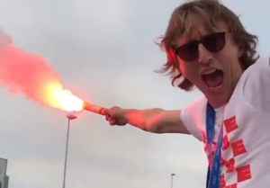 U snimci koju je, kako se čini, snimio Vedran Ćorluka, možemo vidjeti hrvatskog heroja s klasičnim navijačkim rekvizitom - bakljom u ruci.