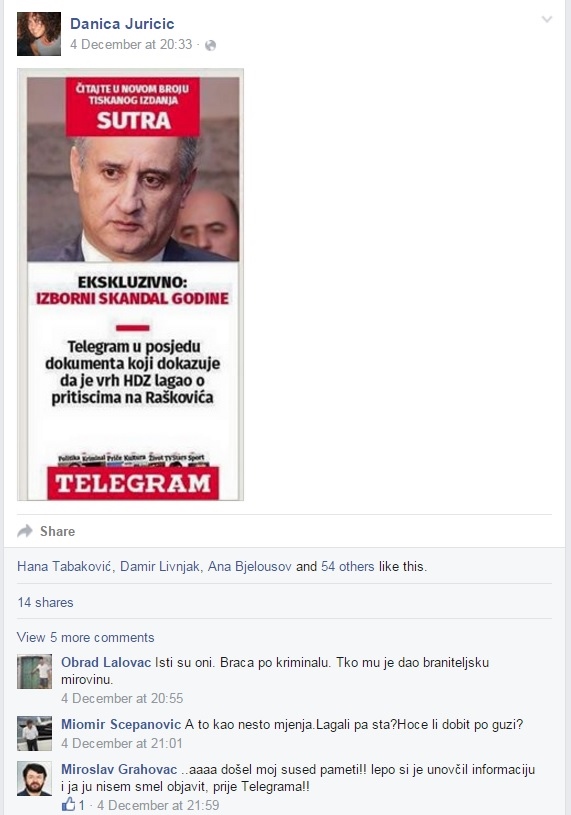 Kampanja se nastavila u tjedniku 'Telegram' koji je objavio dokument, pompozno najavljen kao dokaz 'da je Karamarko lagao da nije potpisao Raškovićev ratni put'. Svega nekoliko minuta nakon što je u petak objavljena najava novog broja tog tjednika, reklamu je podijelila i glasnogovornica SDP Danica Juričić, dok se na njenom facebook wallu razvila živa rasprava o tome kako su informacije došle do redakcije Telegrama. Jedan od njenih prijatelja otkriva i to da nije smio 'objaviti informaciju' do je Telegram ne objavi.