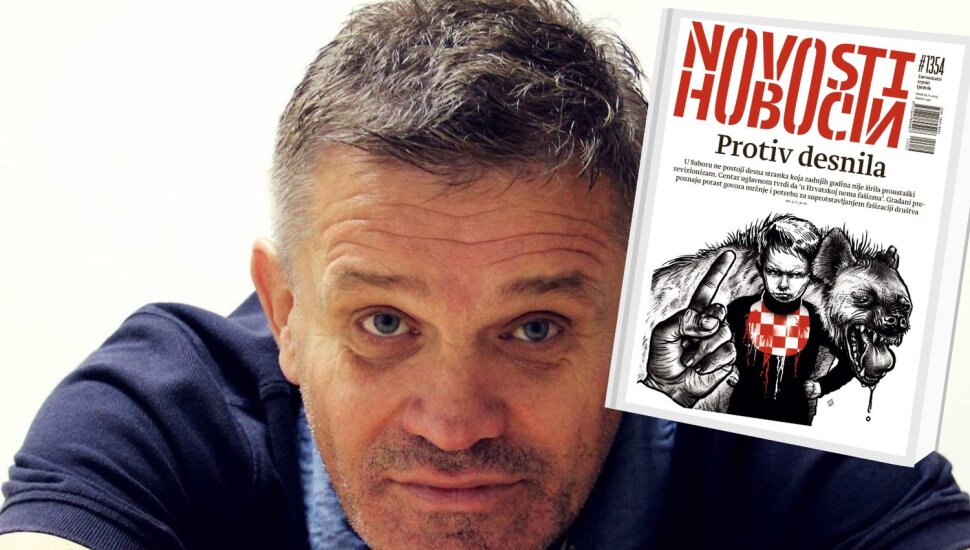 Srpski tjednik Novosti u petak je objavio novi broj, a njegova naslovnica izazvala je pravu buru. Na ilustraciji se prikazuje ljutiti dječak koji nosi podbradnik s uzorkom šahovnice, iz čijih crvenih polja 'curi' tekućina nalik krvi, dok iza njega stoji bijesni pas. Riječ je o naslovnici koja je već na prvi pogled skandalozna i snažno provokativna.