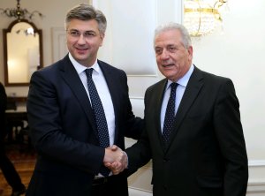 Premijer Andrej Plenković u srijedu je u Banskim dvorima razgovarao s povjerenikom Europske komisije za migracije, unutarnje poslove i građanstvo Dimitrisom Avramopoulosom koji je pohvalio velik napredak Hrvatske u ispunjavanju kriterija za ulazak u Schengen, priopćeno je iz vlade.
