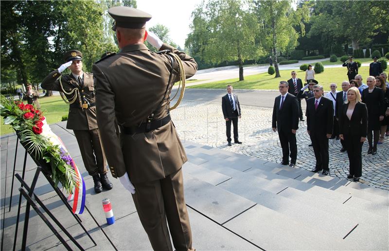 Premijer Tihomir Orešković zajedno s predsjednikom Sabora Željkom Reinerom položio je vijenac na Oltar domovine, prenosi N1.