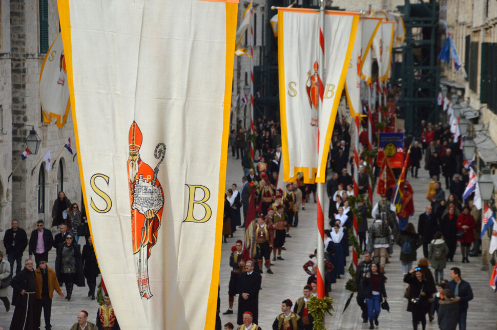 Festa je otvorena je u četvrtak tradicionalnim podizanjem barjaka ispred parčeve crkve u povijesnoj jezgri i puštanjem golubica, a danas se slavila svečana sveta misa u dubrovačkoj katedrali koju je predvodio mons. Egidije Živković, biskup Željeznog u Gradišću. Nakon toga je uslijedila i tradicionalna procesija barjaka Gradom.