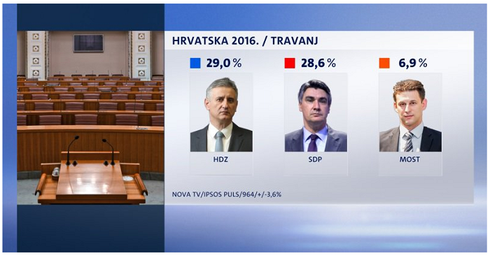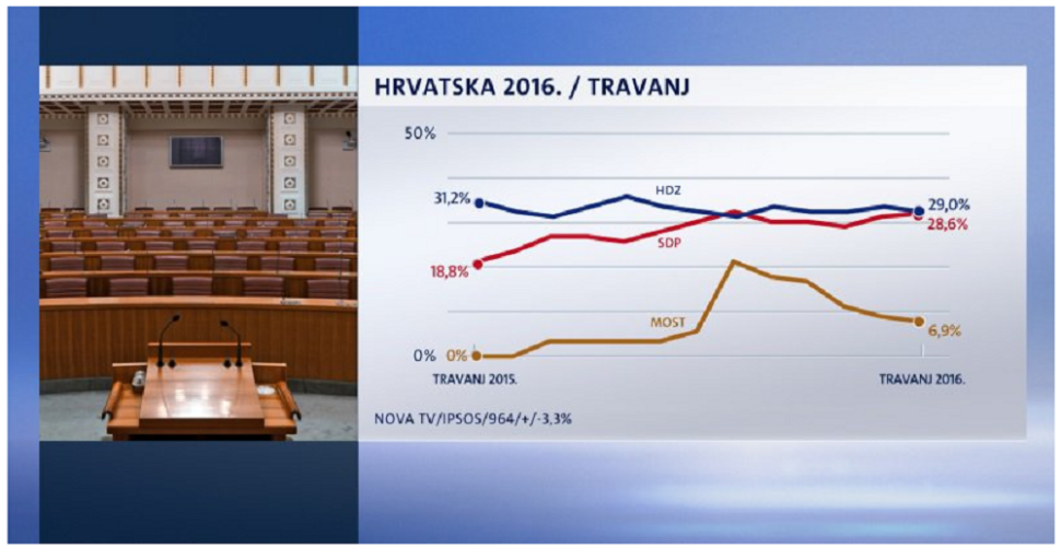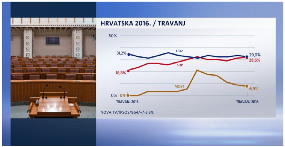 HDZ u ovom trenutku, prema rezultatima uživa potporu 29,0 posto birača, a SDP može računati na 28,6 posto birača. MOST je travanj završio na 6,9 posto ili skoro jedan postotni poen manje.