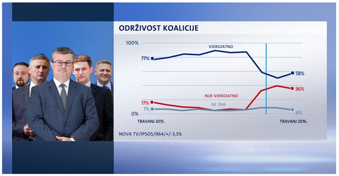 Porastao je broj građana koji misle da će vlada odraditi mandat do kraja i sada je njih 58 posto, a još prije mjesec dana bilo ih je 51 posto. Zato je pao i broj onih koji misle da ćemo na prijevremen izbore. Takvih birača ima 36 posto.