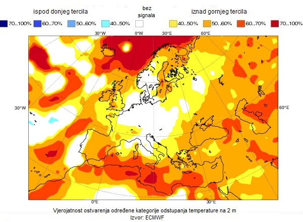 "Pri tom je u studenom moguće malo toplije od prosjeka u većem dijelu zemlje, a pozitivno odstupanje srednje mjesečne temperature izgledno je i u siječnju. S druge strane, u prosincu je u nekim područjima povećana vjerojatnost za malo hladnije nego što je uobičajeno.