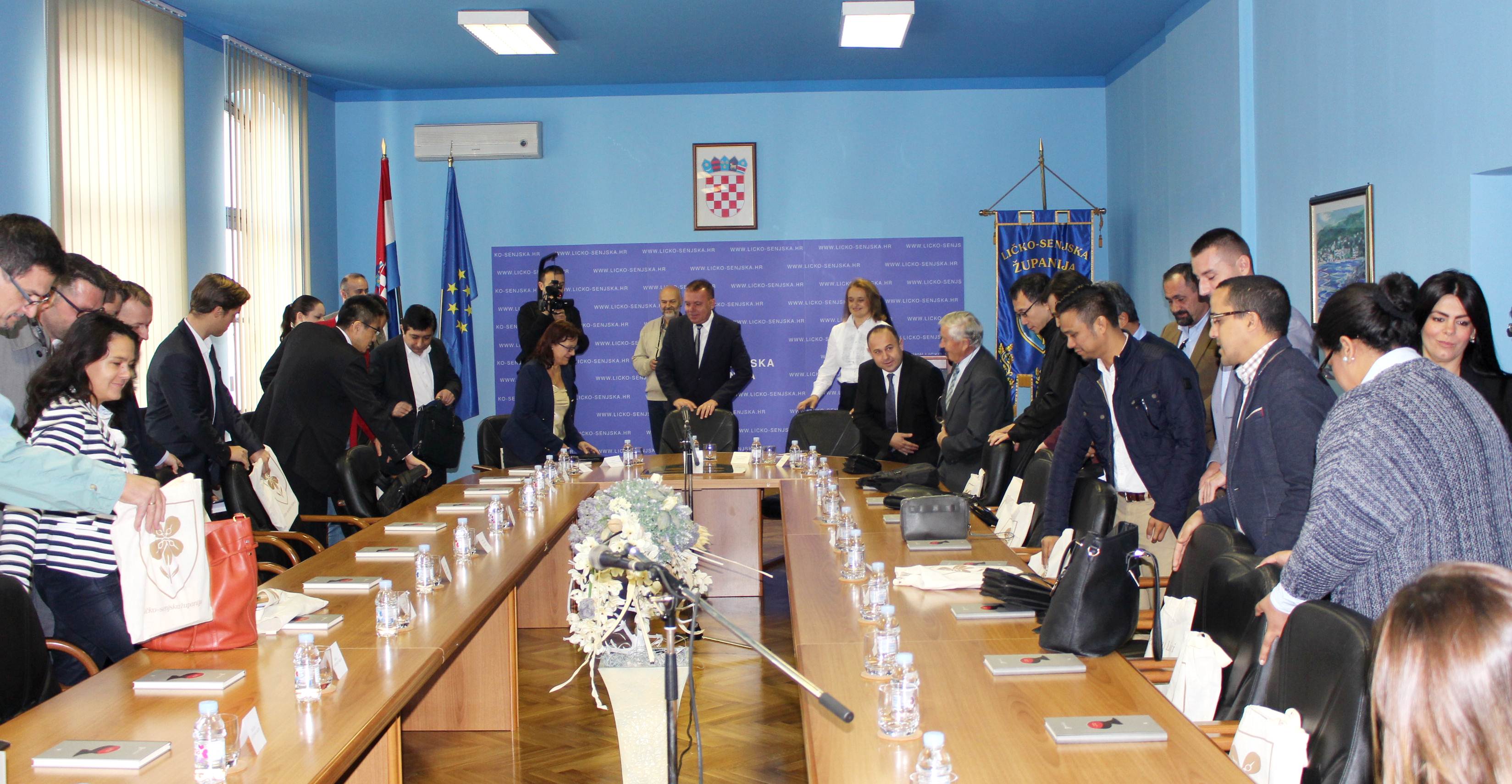Sastanku u kabinetu župana Milana Kolića nazočili su predstavnici Kine, Indonezije, Malezije, Indije, Alžira, Maroka, Turske, Austrije, Danske, Francuske, Irske, Belgije, Italije, Slovenije, Srbije, Albanije, Rumunjske i Poljske, koji su se potom uputili na Trg Stjepana Radića na svečano otvorenje 18. Izložbe tradicijskih proizvoda „Jesen u Lici“ nakon čega će u pratnji domaćina razgledati Izložbu.