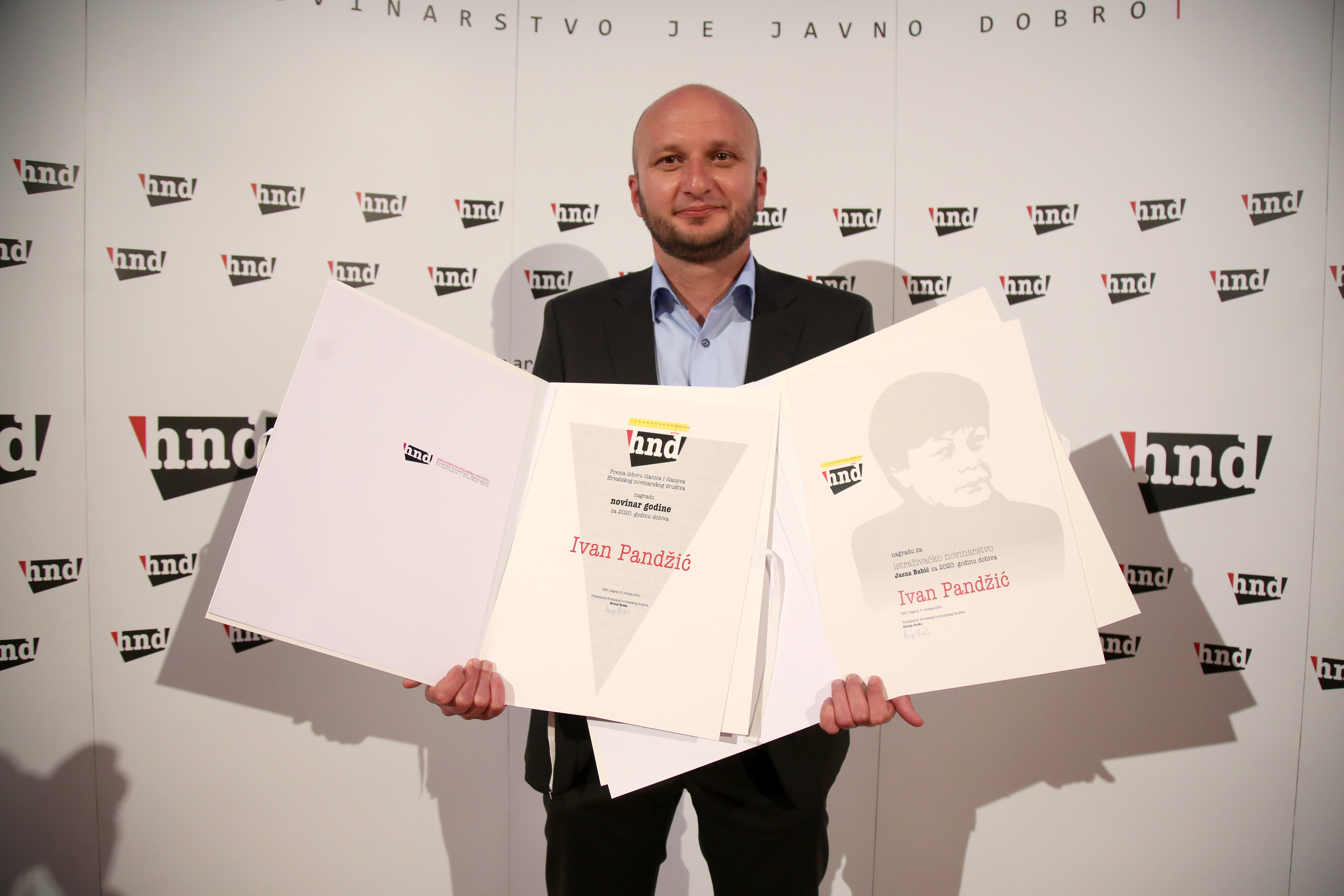 Hrvatsko novinarsko društvo (HND) održalo je u ponedjeljak svečanu dodjelu nagrada za najbolje novinarske radove u 2020. godini, a nagradu za novinara godine dobio je novinar 24sata Ivan Pandžić.