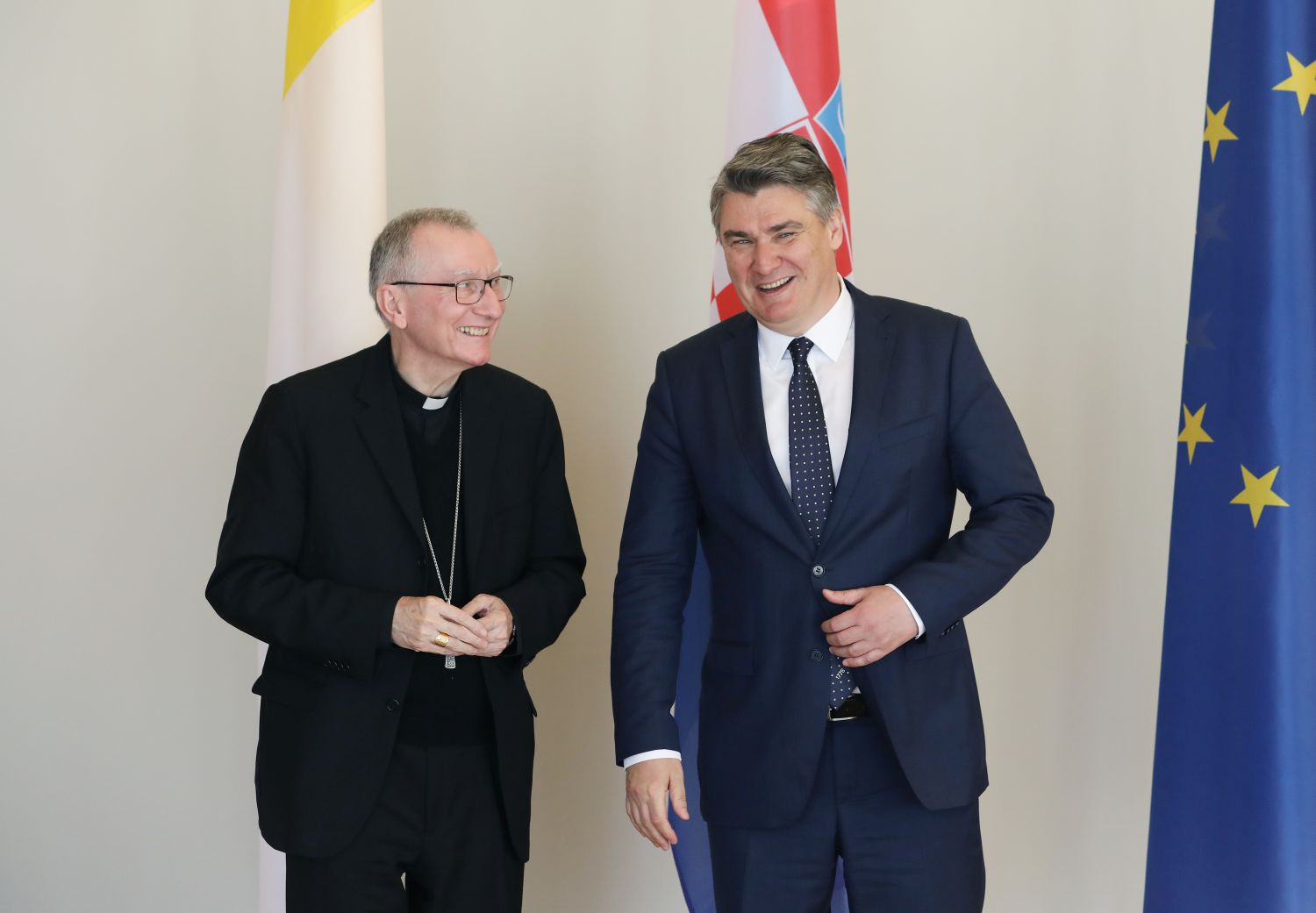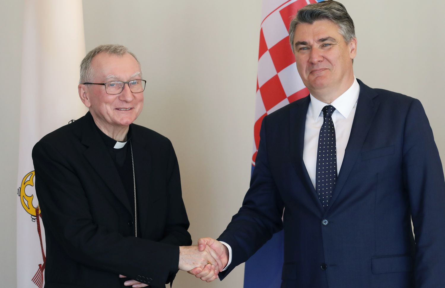 Hrvatski predsjednik Zoran Milanović primio je u četvrtak u svojem uredu državnog tajnika Svete Stolice kardinala Pietra Parolina s kojim je razgovarao o odnosima dviju država, ratu u Ukrajini i situaciji u jugoistočnoj Europi, priopćeno je iz Ureda predsjednika.