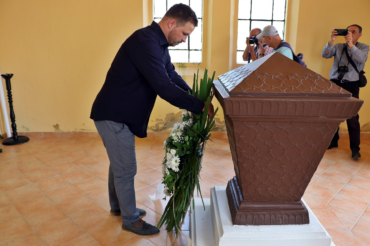 Vijenac kod spomen-obilježja u objektu na ulazu u Židovsko groblje položio je i saborski zastupnik i gradonačelnik Đakova Marin Mandarić.