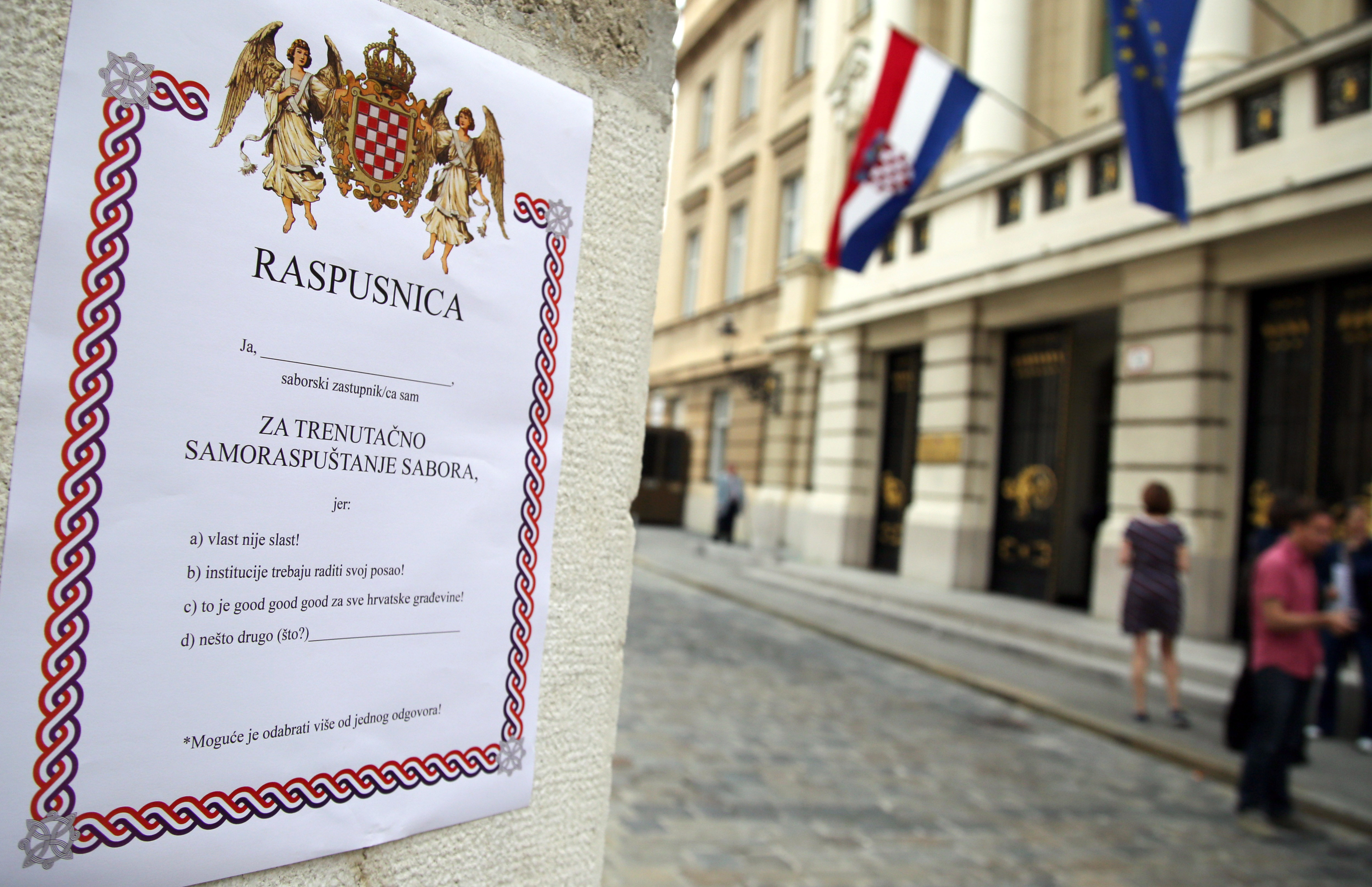 GONG ispred Sabora dijeli 'raspusnice' zastupnicima: Dosta je bilo!
