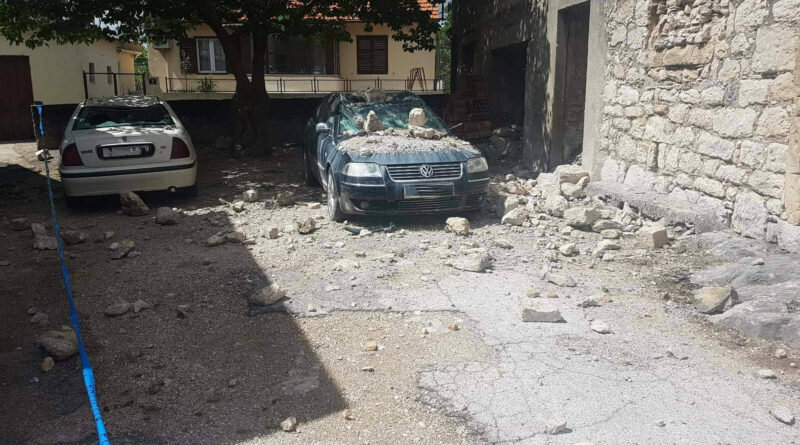 U udaru groma u ruševinu kuće u Drnišu oštećeni su krovovi okolnih kuća kao i nekoliko automobila.