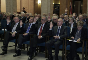 Nakon što 31. prosinca istekne mandat sadašnjem predsjedniku HAZU akademiku Zvonku Kusiću te članovima predsjedništva i uprave, dužnost preuzima 1. siječnja novi predsjednik HAZU-a akademik Velimir Neidhardt te potpredsjednici akademik Davor Miličić, akademik Frano Parać i tajnici devet Akademijinih razreda izabrani na skupštini 15. studenog.