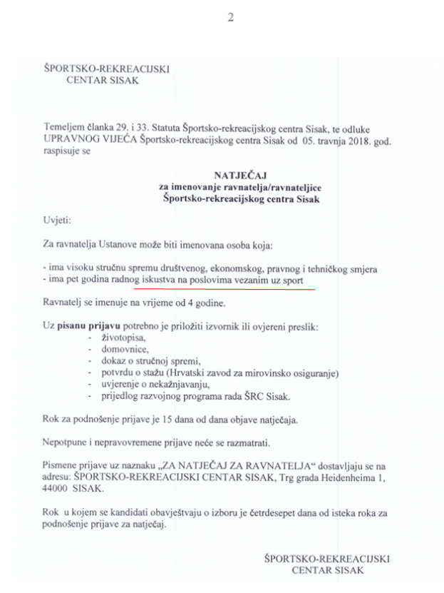 "Od članova Upravnog vijeća tražimo da se javno očituju da li je prlikom kreiranja uvjeta natječaja za izbor ravnatelja učinjeno nekoliko propusta, a odnose se na uvjete strogo propisane Statutom Šprotsko rekreacijskog centra. Prilikom utvrđivanja teksta natječaja dodano je da kandidati moraju imati radno iskustvo na poslovima vezanim uz sport, ali nije navedeno s kojim stupnjem obrazovanja. Gospodin Mario Stipkov iz Kaštela navodno je bio odbojkaški trener no s fakultetskim obrazovanjem nema radnog iskustva na poslovima vezanim uz sport", napisali su u svom reagiranju gradski zastupnici.