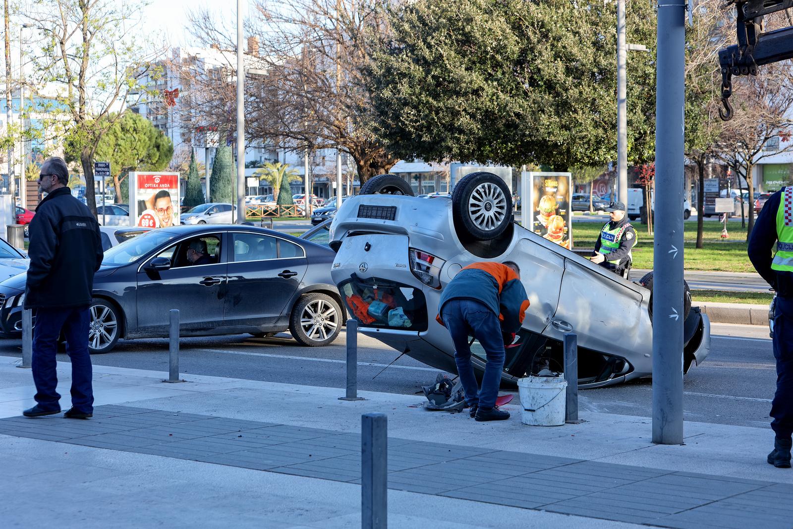 Horor u centru Zadra: Teški sudar dva automobila, jedan završio na krovu