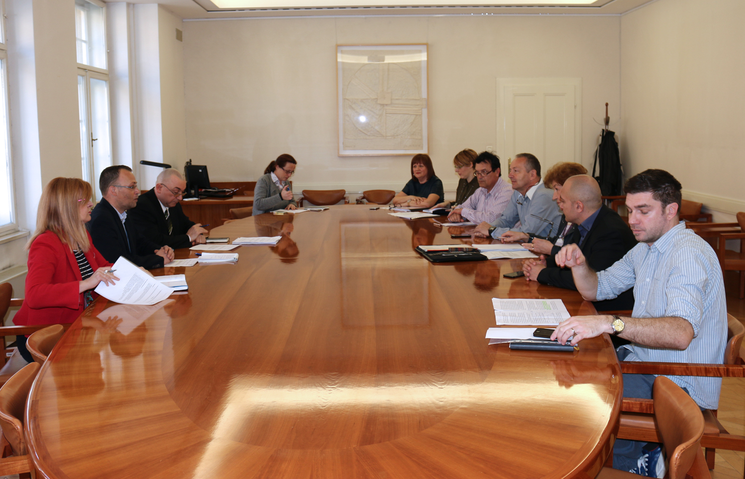 Na sastanku, na kojem su uz ministra kulture sudjelovali zamjenica ministra Ana Lederer i Tomislav Jelić, načelnik Sektora za normativne i upravno-pravne poslove Ministarstva kulture, govorilo se o predstojećim pregovorima Vlade RH sa sindikatima o pitanjima vezanima uz novi Temeljni kolektivni ugovor za službenike i namještenike u javnim službama, kao i o potrebi otpočinjanja pregovora o novome Granskom kolektivnom ugovoru jer vrijedeći kolektivni ugovori istječu krajem godine.