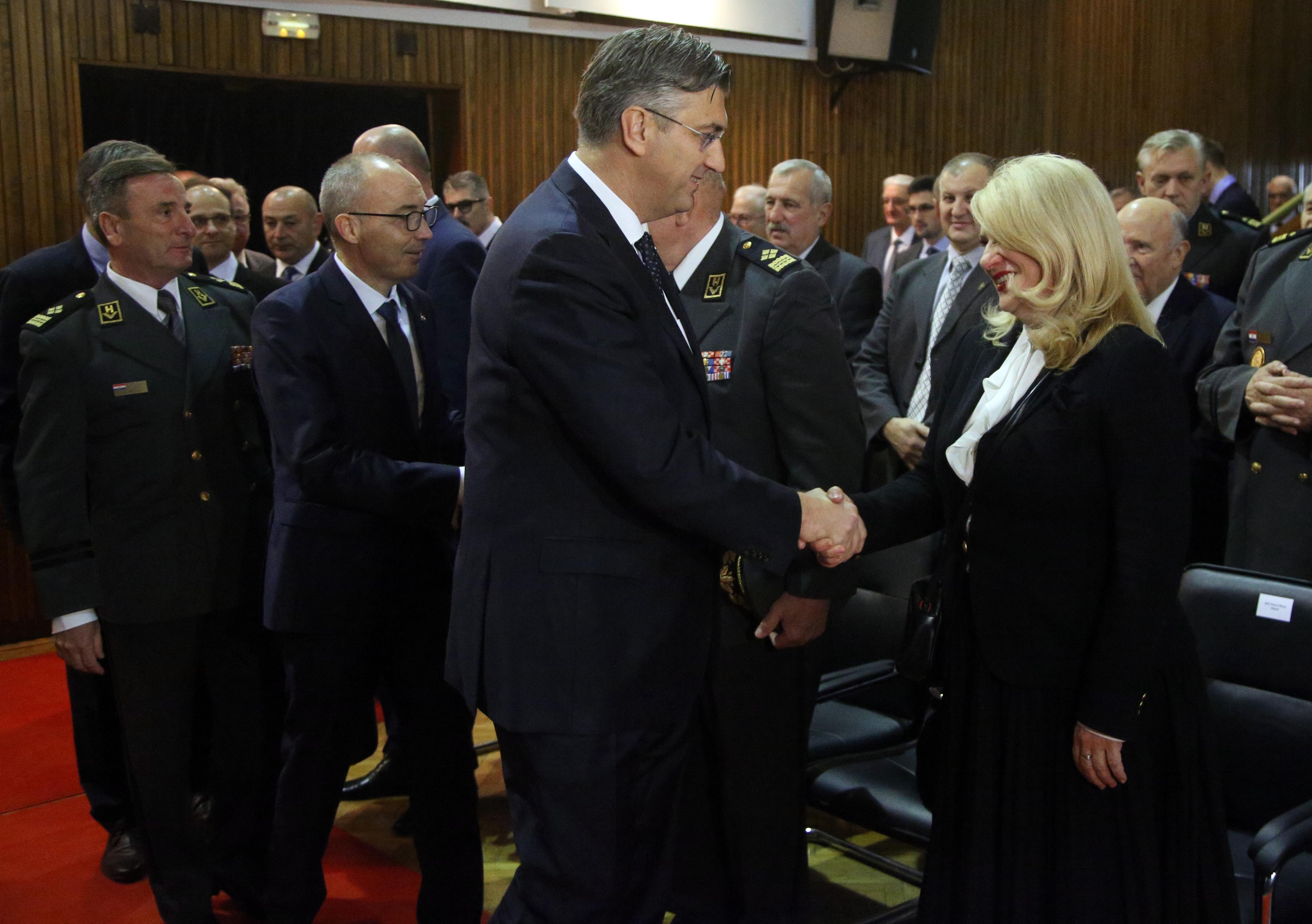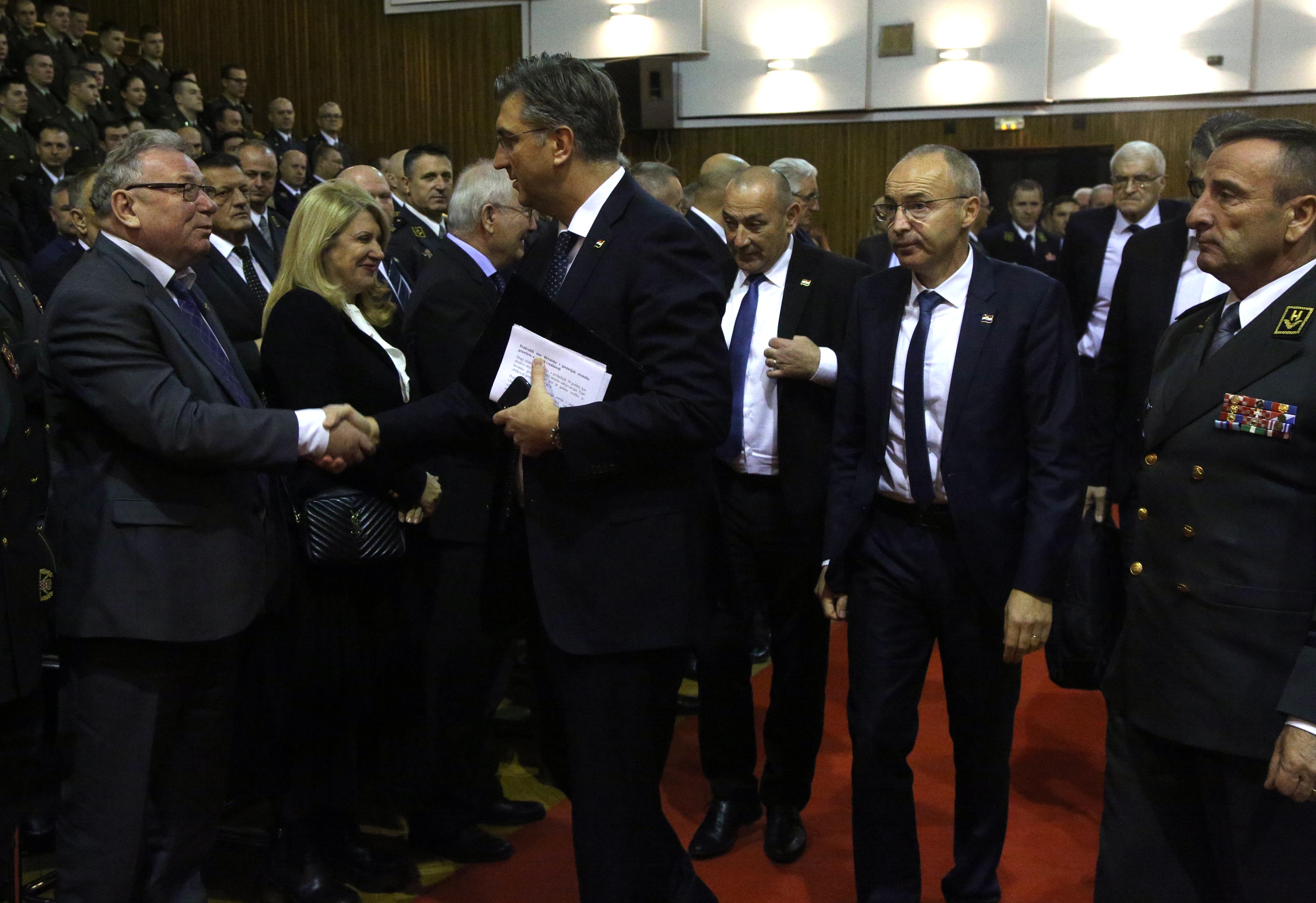 Krstičević je u uvodu pozdrav uputio i predsjednici Republike i vrhovnoj zapovjednici Oružanih snaga Kolindi Grabar-Kitarović. "Danas nije tu s nama, ali slijedi smjer prvog hrvatskog predsjednika vjerno braneći naše nacionalne interese i časno predstavljajući Republiku Hrvatsku u svijetu", rekao je.