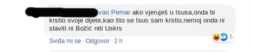 Naravno, spornim je objavama izazvao lavine komentara, mahom neodobravajućih nakon čega se i Pernar oglasio u komentarima pojašnjavajući svoj vjerski izbor: "kršćanin koji vjeruje u Isusa, ali nije član ni jedne vjerske zajednice. Slobodni vjernik, rekao bi".