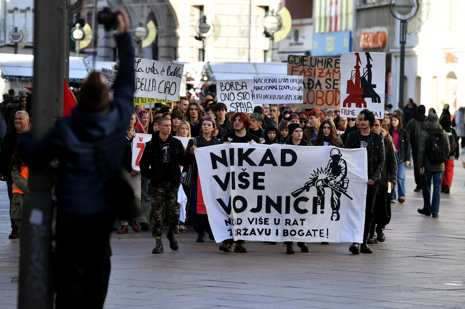 Tridesetak osoba odjevenih u crno, u većini maskiranih lica, došli su na Jadranski trg dok su se okupljali sudionici, vikali su i bacali eksplozivna sredstva prema sudionicima skupa.