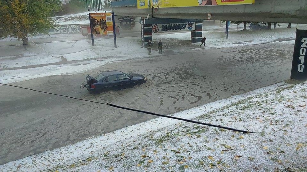 Snažna kiša praćena tučom poharala, u nekoliko minuta Osijek zabijelio
