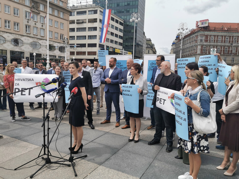 Na konferenciji za medije brojni stranački aktivisti nosili su plakate i transparente koji su aludirali da je Hrvatskoj potrebno svega pet regija, umjesto 20 županija.