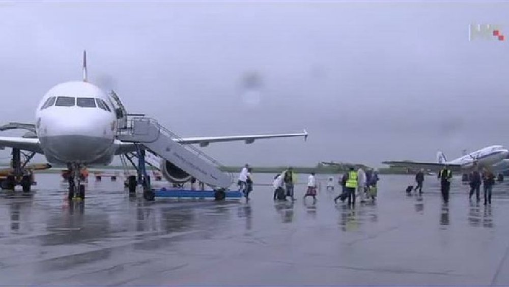 Krštenjem zrakoplova iz vatrogasnih vodenih topova svečano je otvorena nova linija u osječkoj Zračnoj luci Stuttgart - Osijek - Stuttgart.