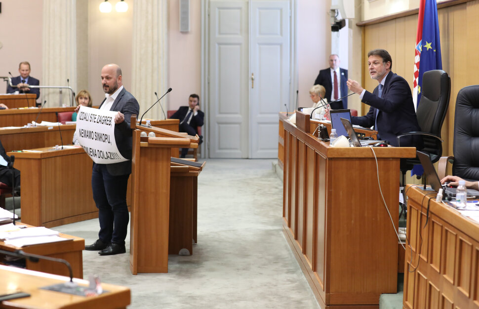 Hrvoje Zekanović iz redova Hrvatskih suverenista tražio je stanku od 10 minuta te poručio da "ovdje gledamo igrokaz izemđu HDZ-a i SDP-a. Kolega Maras samo vi budite tu, ni vi ni kolega Jandroković nećete zavarati hrvatske građane, vi niste alternativa. U svim ključnim temama koje su potresale hrvatsko društvo u proteklom mandatu i SDP i HDZ su bili istomišljenici".