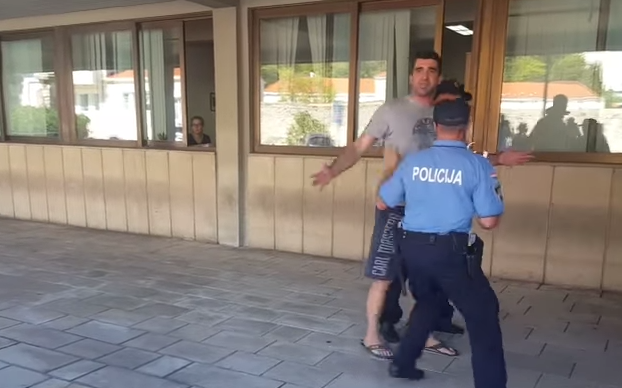 Prilikom privođenja, osumnjičeni 44-godišnjak se nakratko oteo iz ruku policijskih službenika, okrenuo se u prema novinara te ih izvrijeđao i pljuvao.