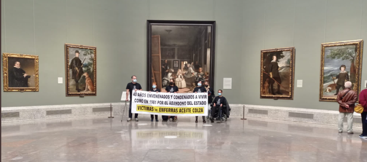 Skupina ljudi koja je preživjela masovno trovanje uljem uljane repice prije 40 godina, u utorak je izvijestila da je zauzela madridski muzej Prado i da će, ne ispuni li vlada njihove zahtjeve, izvršiti samoubojstvo u roku od nekoliko sati.