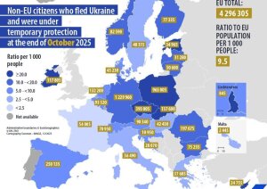 Naime, dana 31. listopada 2025., ukupno 4,3 milijuna državljana trećih zemalja izvan EU-a koji su pobjegli iz Ukrajine imalo je status privremene zaštite u EU-u. U usporedbi s krajem rujna 2025., ukupan broj osoba iz Ukrajine pod privremenom zaštitom smanjio se za 6170 (-0,1 posto).