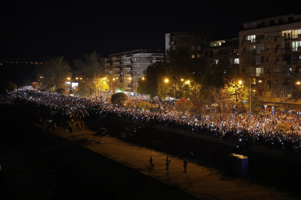 Simboličnim puštanjem u nebo 16 lampiona i 16-minutnom šutnjom završen je u nedjelju navečer u Novom Sadu skup na kojem su deseci tisuća ljudi obilježili godišnjicu pada nadstrešnice na željezničkom kolodvoru u kojem je poginulo 16 ljudi i za koji kritičari optužuju korumpiranu vlast.