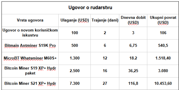 Nudimo razne ugovore s različitim uvjetima, što vam omogućuje slobodan izbor prema vašoj financijskoj situaciji. Svi povrati se automatski obračunavaju dnevno.