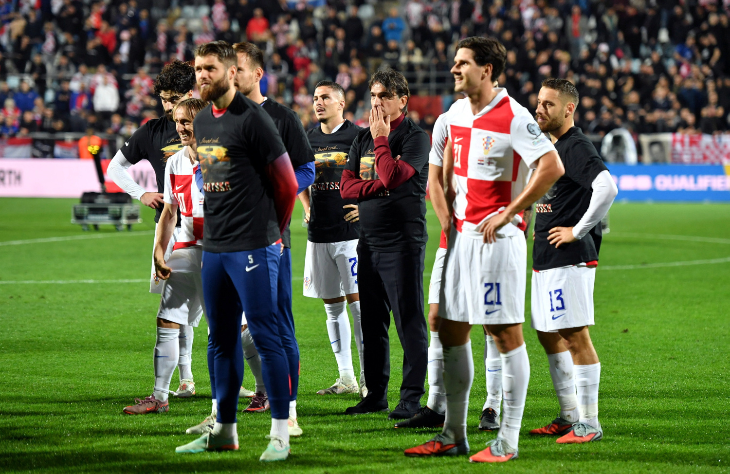 Dojmove je potom podijelio Dalić. "Još jedno SP, dečkima čestitam. Bila je ovo teška utakmica, na kraju smo slavili i opustili se. Bili smo tri, četiri mjeseca pod pritiskom, riješili smo to, idemo dalje. Nismo najbolje počeli, slabo smo trčali, nije bilo agresije i duela. Težak protivnik, vrlo nezgodna ekipa, trči i radi. Na kraju smo dobili i proslavili, hvala svima." Eksperiment s tri u obrani nije uspio. "Štogod smo napravili igrali smo s četiri braniča. Ovo smo pokušali, to treba puno vremena. Neću to više pokušavati, neka kažu što god hoće, ja znam što me je ranije dovelo do Svjetskog prvenstva."