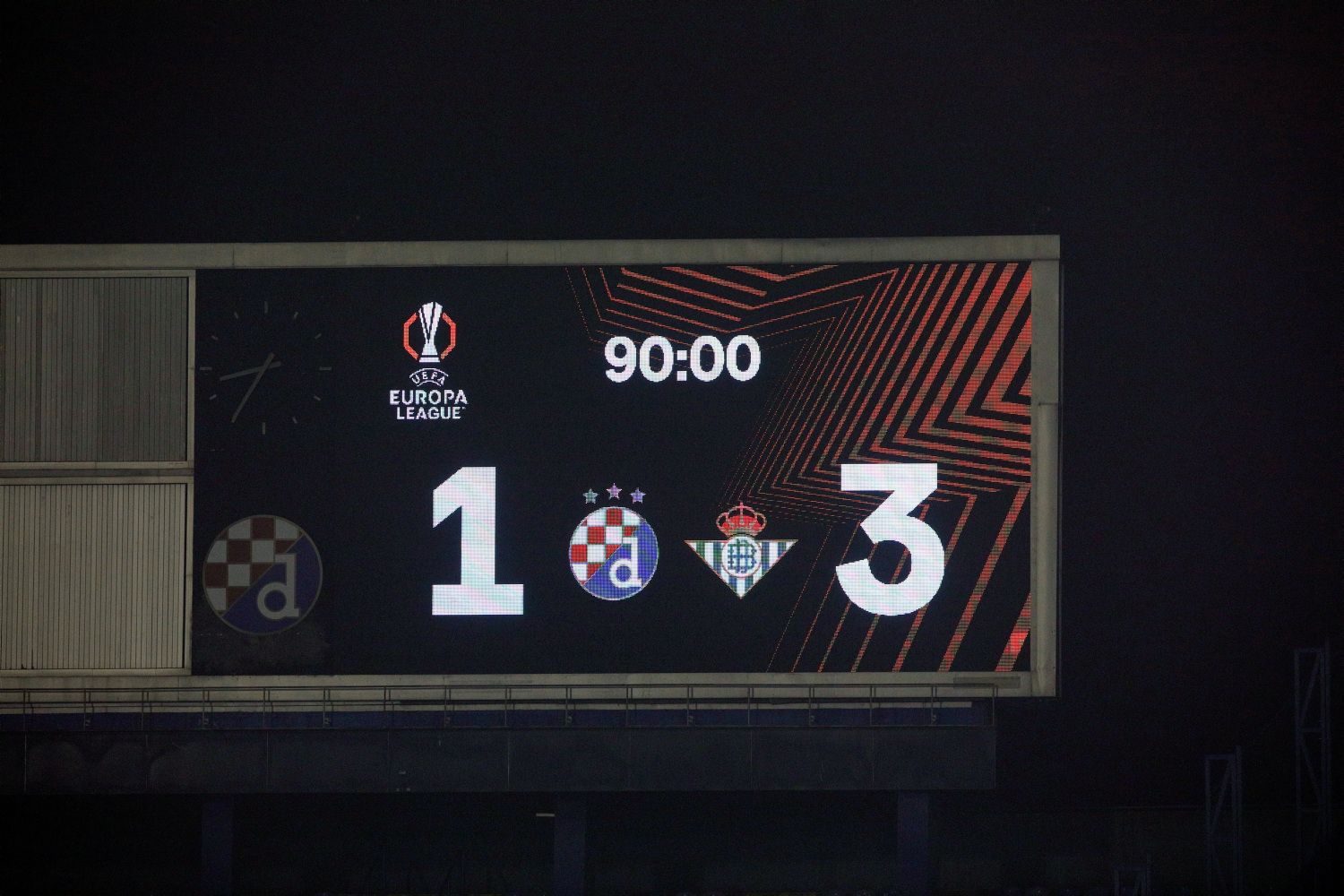 Dinamo je u utakmici šestog kola Europske lige na stadionu Maksimir pred 11.000 gledatelja izgubio od Real Betisa s 1:3, upisavši tako treći poraz u nizu.
