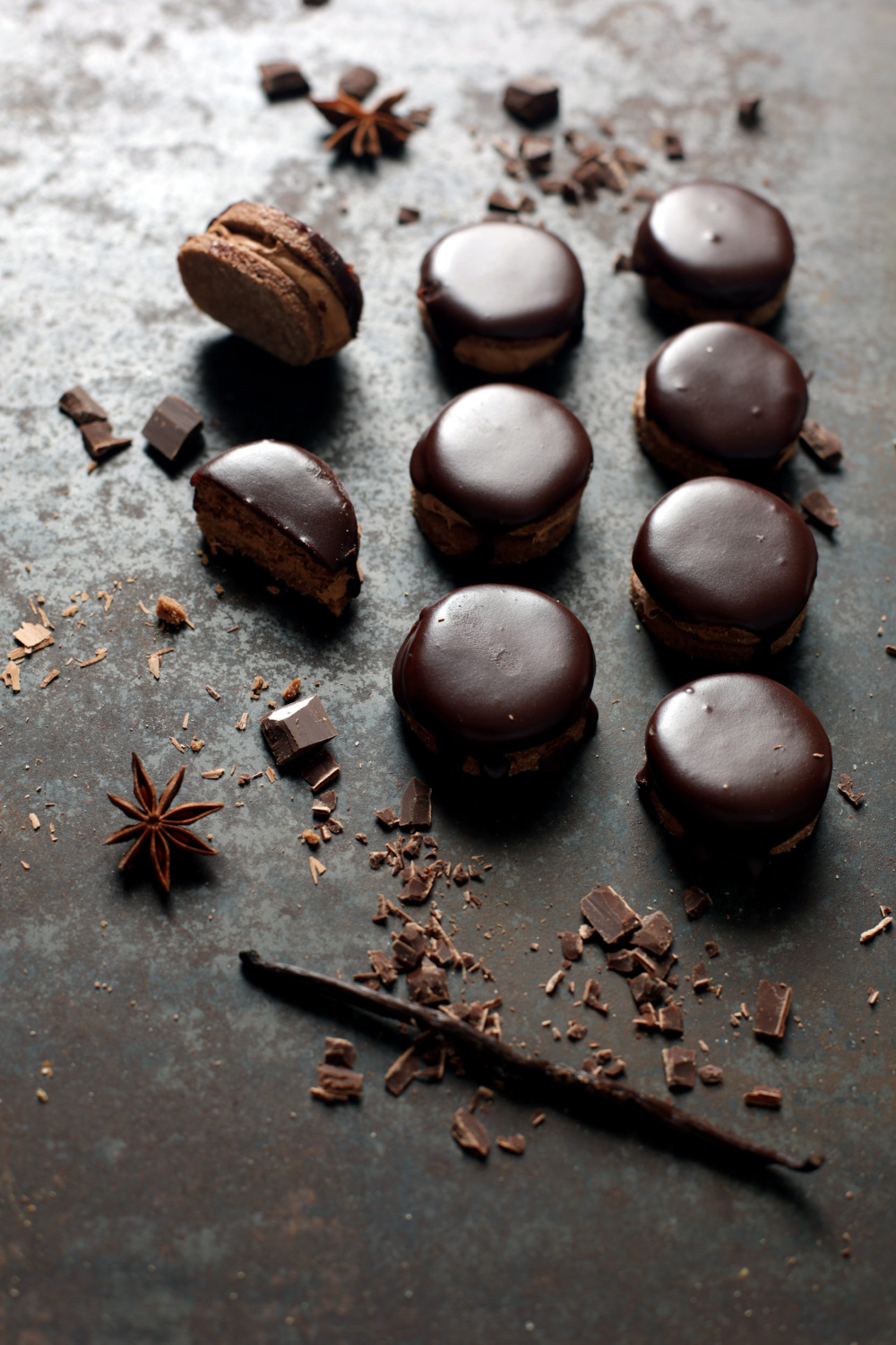 Ohlađeno tijesto razvalja se na pola centimetra debljine, a zatim se čašicom ili kalupom režu mali krugovi. Važno je da svi budu jednake debljine kako bi se ravnomjerno ispekli. Krugovi se poslože na pleh i peku oko 10 minuta na 170 °C, samo toliko da lagano porumene po rubovima. Nakon što se ohlade, spajaju se bogatom kremom od 150 g maslaca, 150 g šećera u prahu, 2 žlice ruma i 100 g otopljene tamne čokolade. Krema mora biti glatka, svilenkasta i dovoljno čvrsta da drži oblik.