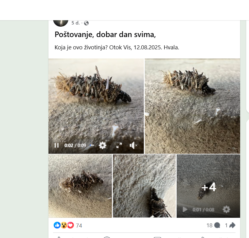 Na Facebook grupi "Koji je ovo pauk/kukac?" jedan je korisnik podijelio fotografiju neobične životinjice koju je uočio na Visu, a zanimalo ga je o čemu se radi. Odgovore je dobio u komentarima, no mnoge je, sudeći po reakcijama, iznenadila sama pojava te životinjice s kojom se većina nikada nije susrela.