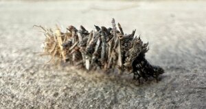 “Izgleda baš kao mali ‘otpadak koji hoda’, ali zapravo to nije buba ni čudovište, nego ličinka moljca vunara (tzv. bagworm, porodica Psychidae). Ove ličinke grade sebi kućicu/oklop od grančica, iglica, lišća, pa čak i prašine – svega što pronađu oko sebe. Nose ga na leđima dok pužu i izgledaju poput hrpice smeća koja se miče. Kada dođe vrijeme, zakukulje se unutra i pretvore u leptirića/moljca.”